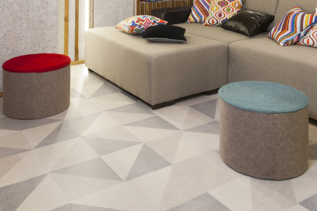 Для этой гостиной дизайнер специально разработал рисунок напольного покрытия. С помощью метода прямой печати его перенесли на пробку. Внешне пол выглядит как ковролин, а на самом деле это практичный и износостойкий пробковый пол. Стены гостиной тоже отделаны пробкой.