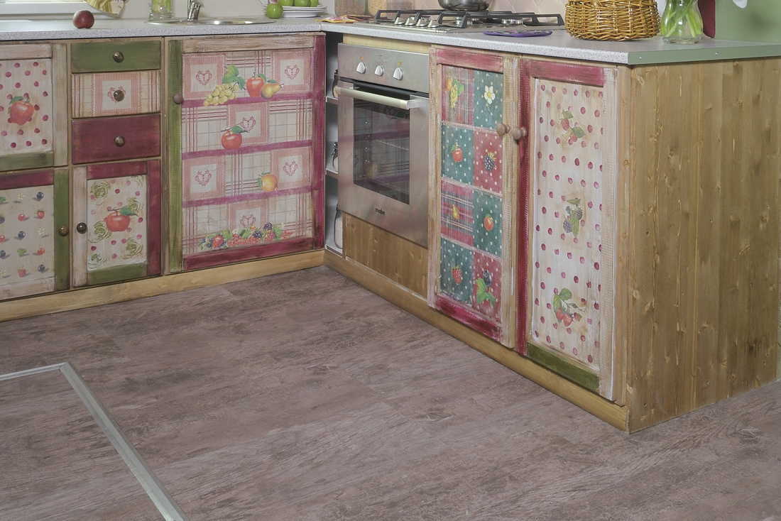 При такой яркости мебели пол и стены должны быть нейтральных оттенков. Выбранный дизайнером стиль можно отнести к провансу в русском прочтении. И к нему отлично подошел пробковый пол с изображением немного состаренной древесины.